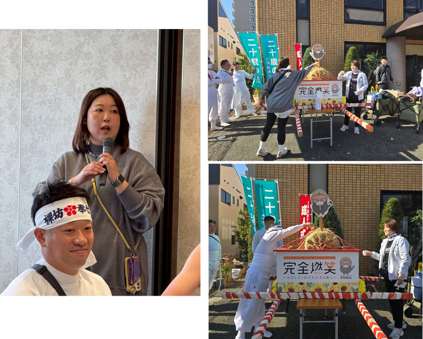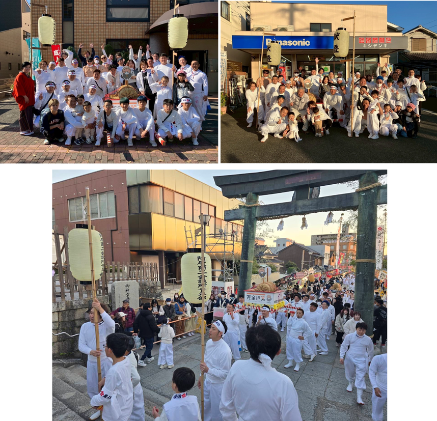 令和7年11月22日(土)第1022回 防府天満宮御神幸祭(裸坊祭)に奉仕しました。当日は、防府YEGメンバーをはじめ、ご家族、OB、オブザーバー、そして下関YEGの皆様にもご参加いただき、「兄弟!わっしょい!」の掛け声とともにお神輿を担ぎ、約50カ所を巡回して商売繁盛を祈願しました。メンバーのお子さん達も元気に参加し、御祝儀へのお礼としてお餅を配るなど大活躍でした。巡回中には炊き出しやドリンクの差し入れ、温かい声援を多数いただき、心より感謝申し上げます。来年も皆で元気にご奉仕できることを願うとともに、今後も防府YEGは笑顔の輪を広げ、地域を盛り上げてまいります。