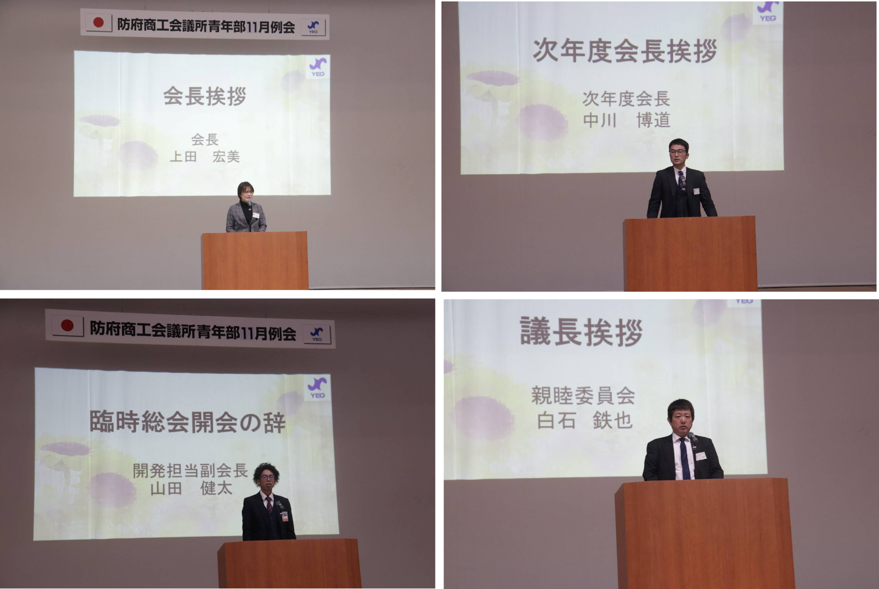令和7年11月18日(火)防府市創業・交流センター2階多目的ホールにて、11月度例会および臨時総会が開催されました。